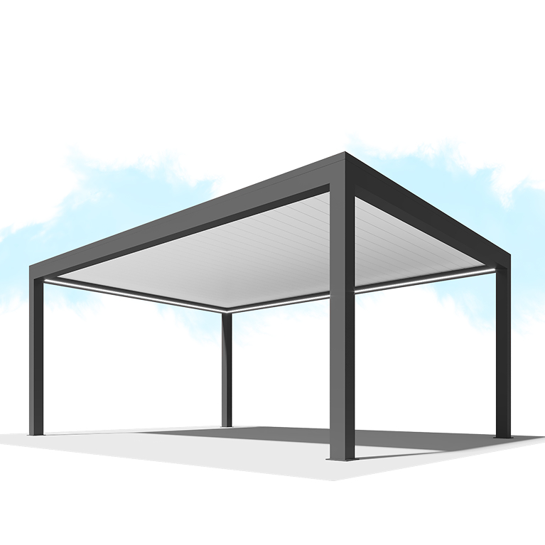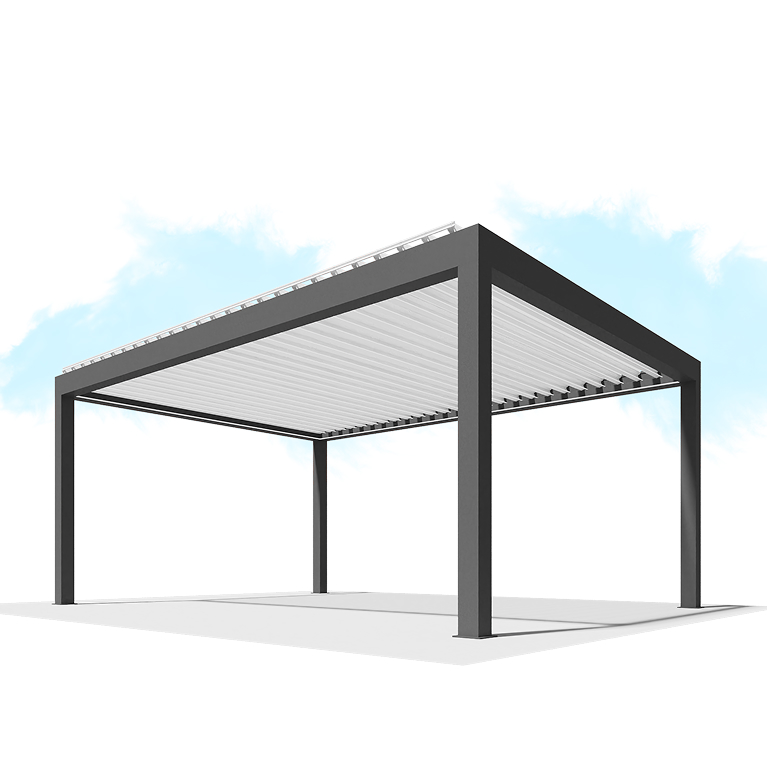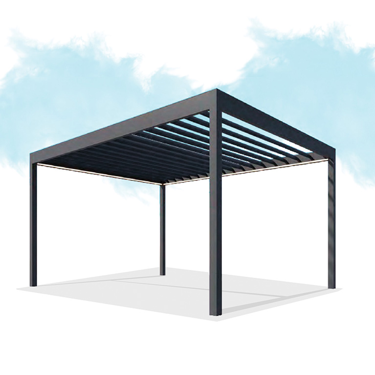 Поворотными ламелями оснащаются две модели биоклиматических пергол: B400 и B500. Вращаясь вокруг своей оси, аэродинамические элементы позволяют регулировать доступ солнечных лучей и естественного света. Такие настройки дают возможность поддерживать комфортные условия отдыха в любой ситуации, в том числе во время летнего зноя или непогоды.