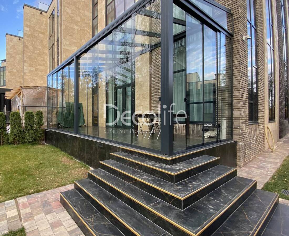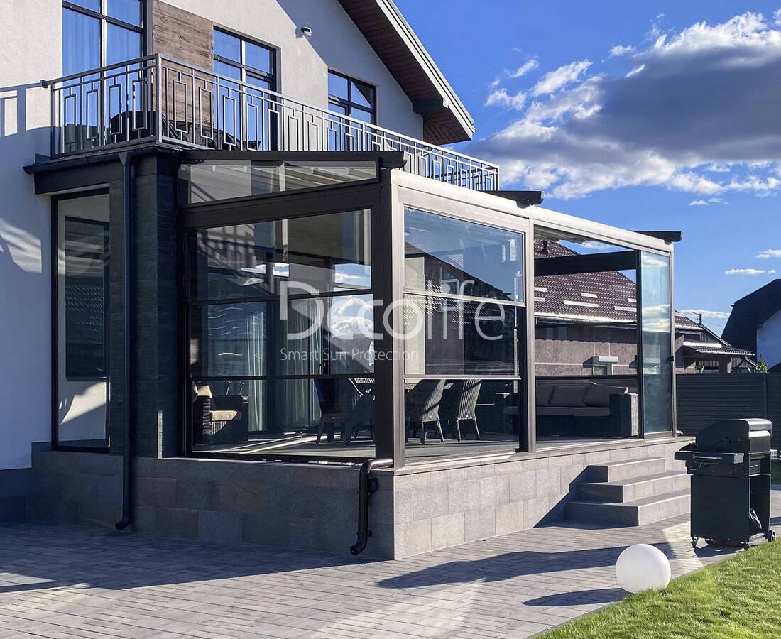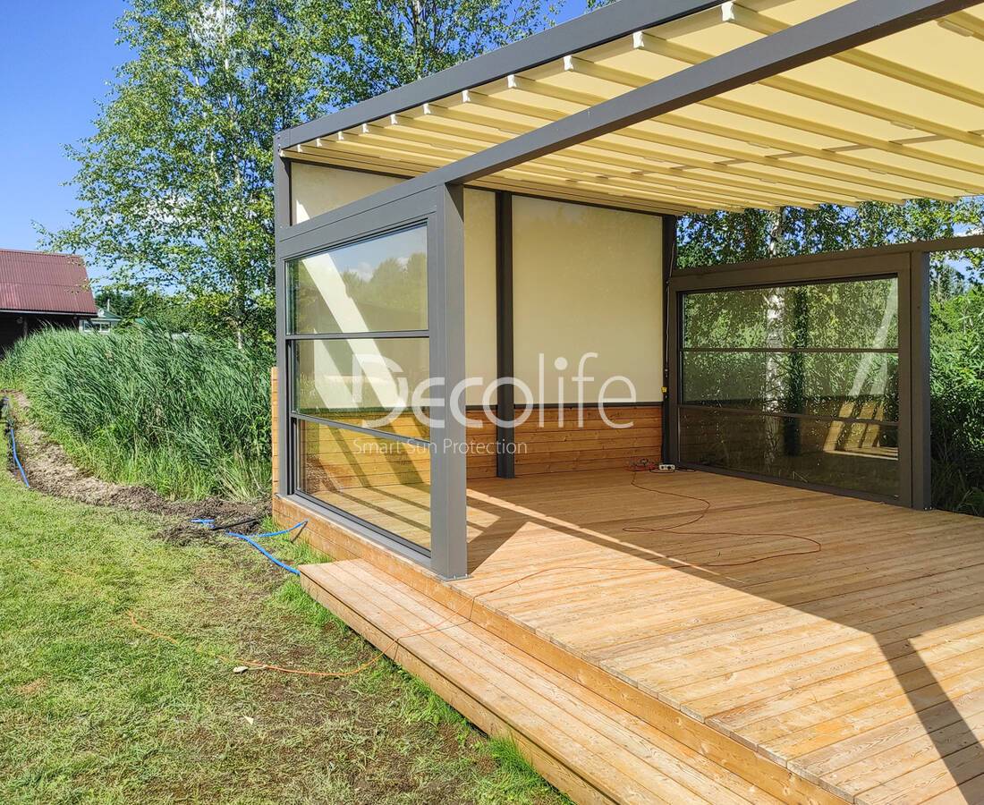 Пергола тентовая Decolife Project Light + Подъемное остекление W500 - реализовано партнером "ООО Люкс Террас" - Московская обл.
