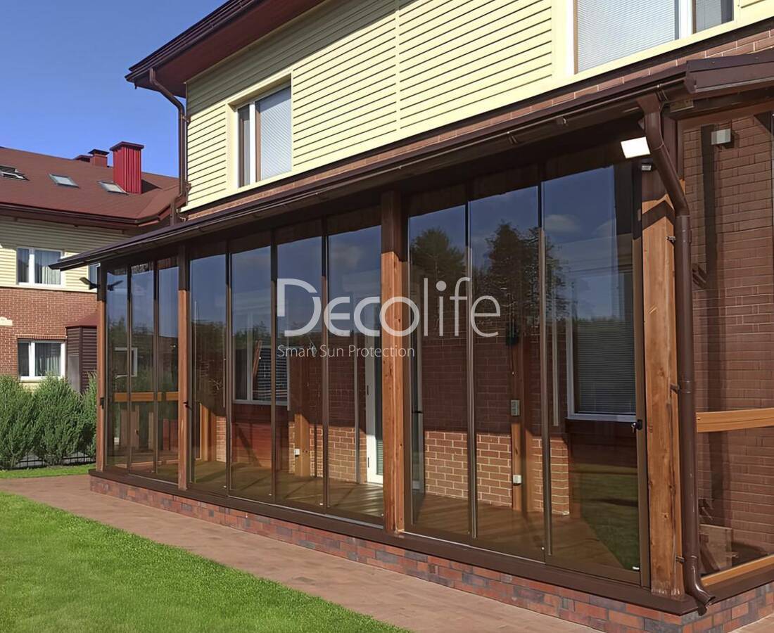 Исходя из характеристики веранды или другой площадке, устанавливается до 10 панелей. Все они бесшумно передвигаются, легко очищаются, не требуют сложного ухода. Эстетика такого оформления актуальная как для домашних пространств, так и для коммерческих объектов.