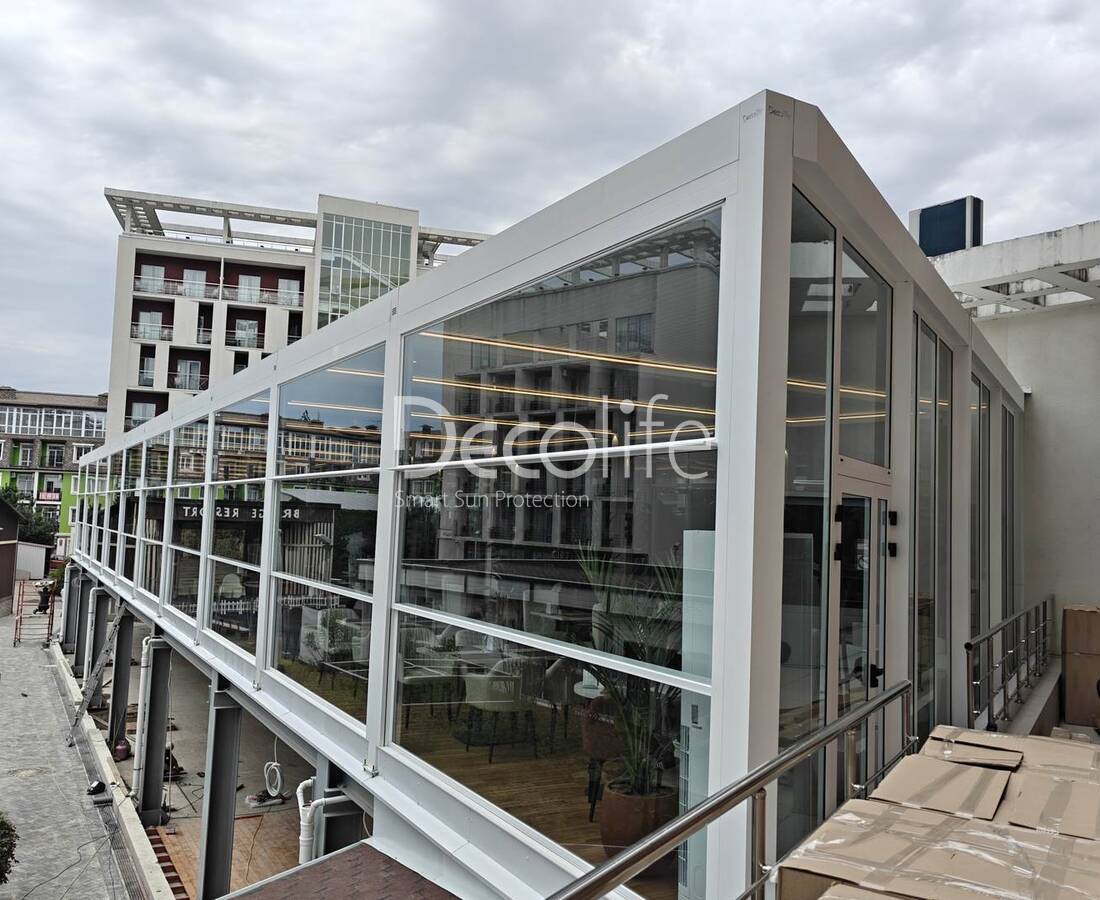 Пергола Decolife B600 PIR + Гильотинное остекление W500 - г. Сочи, ФТ Сириус, ГК Bridge Resort